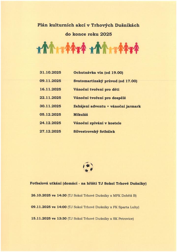 Plán kulturních akcí a fotbalových utkání do konce roku 2025