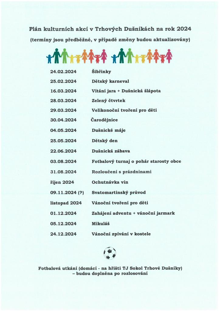 Plán kulturních akcí v Trhových Dušníkách na rok 2024.