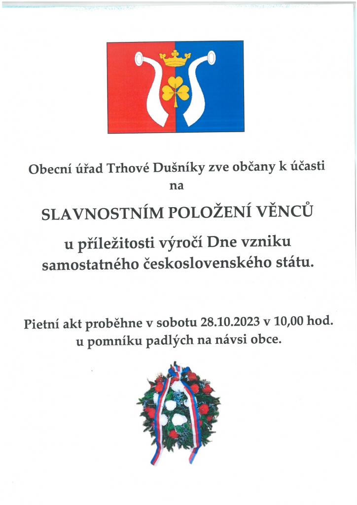 Slavnostní položení věnců u příležitosti výročí Dne vzniku samostatného československého státu.