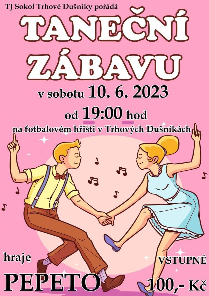 Taneční zábava v sobotu 10.6.2023 od 19,00 hod. na fotbalovém hřišti v Trhových Dušníkách.